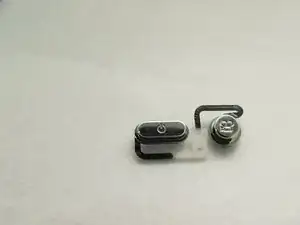 Кнопка крепится к рамке двумя маленькими чёрными стержнями, которые входят в белую часть кнопки (см. изображение).