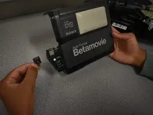 Снимите серебристую прямоугольную панель в верхней части Betamovie вручную.