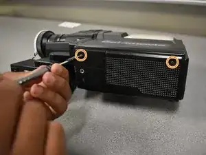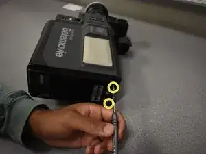 Используя крестовую отвёртку № 0, выверните два винта (2 мм × 6 мм), расположенных по бокам переключателя FILTER, на чёрно-белой стороне Betamovie.