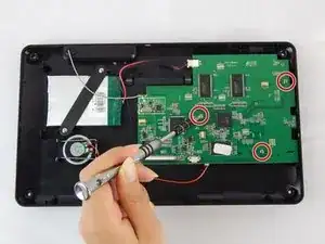 Используйте отвёртку Phillips J1, чтобы удалить три винта длиной 6,1 мм на материнской плате.