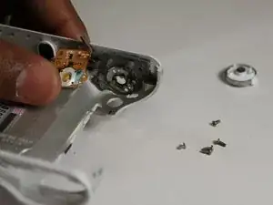 Отодвиньте пластину в сторону и открутите два винта 1/8" на кнопке.