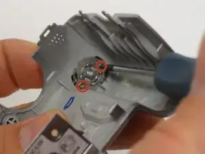 На передней панели снимите два винта с крестообразной головкой 2.5 мм, крепящие кнопку спуска.