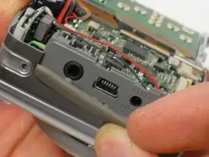 Снимите серый резиновый чехол с надписью DC IN DIGITAL A/V OUT, если он ещё не выпал.