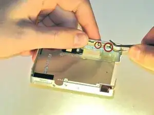 Кнопку можно собрать обратно, используя пинцет, чтобы поместить пружину прямоугольной стороной вниз на кнопку и защёлкнуть кнопку на место.