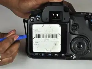 Используйте пластиковый инструмент для вскрытия, чтобы осторожно начать поддевать заднюю крышку от остальной части камеры.