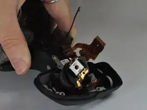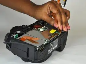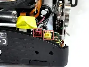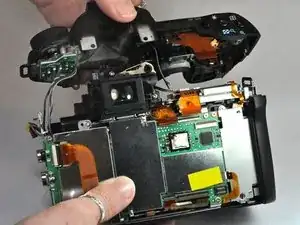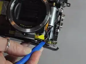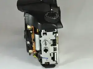 Для выполнения замены требуется разобрать переднюю, заднюю и верхнюю облицовку камеры, чтобы получить доступ к кнопке спуска затвора.