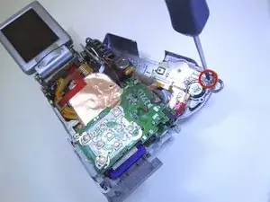 Отверните винт Phillips #00 1.6x3 мм под крышкой карты памяти.