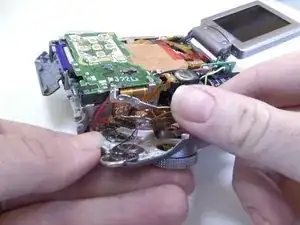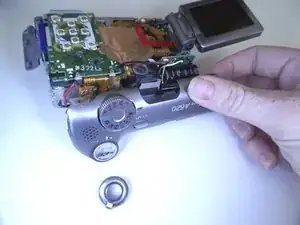 Отверните два винта Phillips #00 1.6x3 мм, крепящие кнопку спуска.