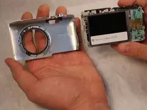 Это должно позволить кнопке спуска затвора освободиться от передней панели устройства.