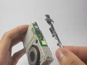 Используя отвертку Phillips #000, удалите восемь винтов, расположенных по бокам и на дне камеры.