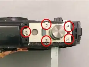Удалите 5 винтов Phillips #00, окружающих кнопку спуска.
