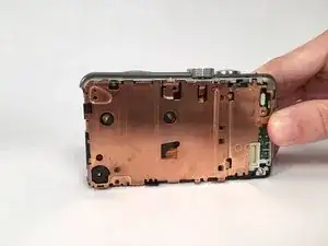 После снятия материнской платы переверните камеру и снимите переднюю панель.