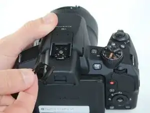 Вытащите рамку кнопки видоискателя/экрана из корпуса камеры.