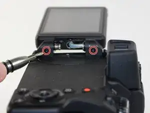 Удалите 2 винта с задней стороны кнопки видоискателя/экрана.
