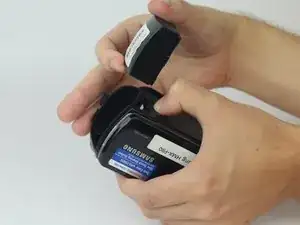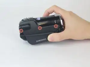 Поверните видеокамеру так, чтобы отсек для аккумулятора был обращён к вам.