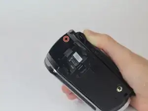 В верхнем левом углу отсека для аккумулятора найдите и выкрутите винт Phillips #00 длиной 4,5 мм.