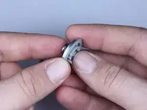 Держите кнопку затвора на месте, пока снимаете круглую металлическую пластину.