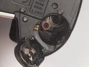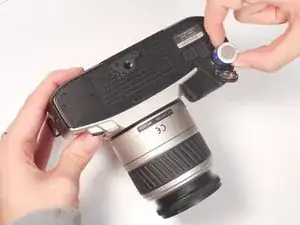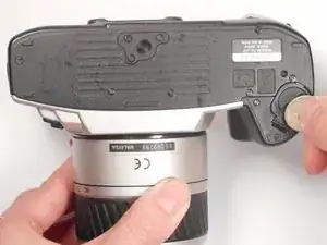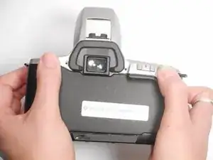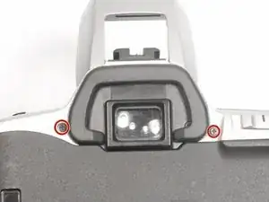 Единственные винты, которые удерживают верхнюю панель камеры, находятся рядом с видоискателем.