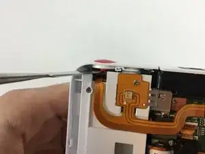С помощью нейлоновой лопатки найдите красные защелки под кнопкой затвора.