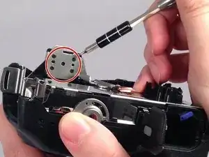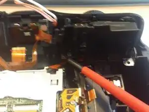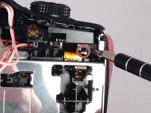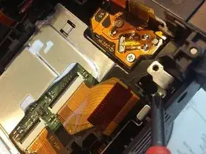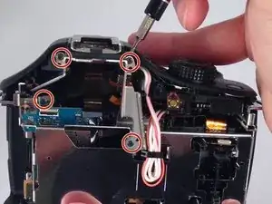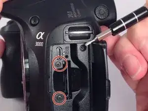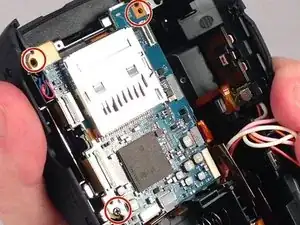 После снятия задней части корпуса удалите два последних винта в области отсека для карты памяти.