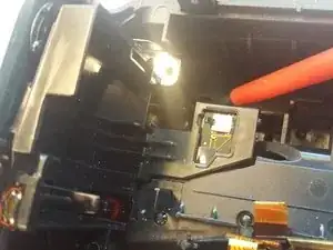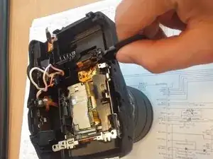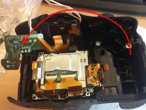 Выньте конденсатор и сдвиньте плату с конденсатором (гибкую) влево, чтобы освободить путь для последующих шагов.