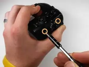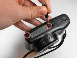 Удалите два винта диаметром 4 мм с нижней части камеры. Продолжайте использовать ту же отвертку с шага 1.