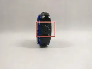 Нажмите на центральную кнопку и поверните диск на боку против часовой стрелки, чтобы открыть отсек для батареи.