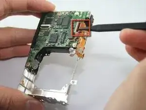 С помощью лопаточки отогните чёрную защёлку на основном шлейфе.