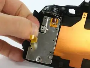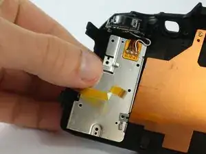 Удаление кнопок интерфейса камеры включает в себя снятие задней части корпуса камеры и удаление кнопки EVF/LCD.