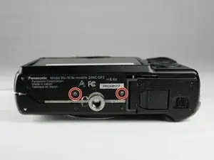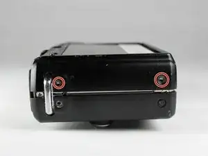 Отверткой Phillips #00 удалите шесть серебристых винтов длиной 2,69 мм, расположенных на двух коротких сторонах камеры и на нижней стороне.