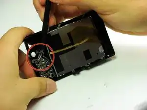 Используя ноготь или лопатку, поднимите зажим ZIF на двух разъемах шлейфа ЖК-дисплея, которые соединяют заднюю крышку с остальной частью устройства.
