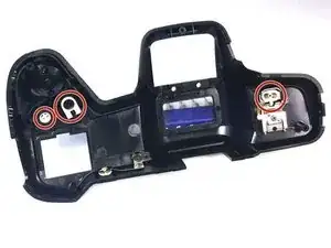 Найдите следующий винт, удерживая камеру вверх дном с пустым отсеком для батареи и ориентированной лицевой стороной вверх.