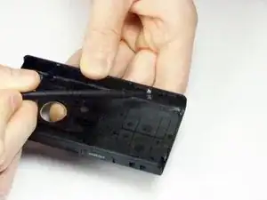 Используйте пластиковый инструмент для вскрытия, чтобы ослабить заднюю крышку устройства.