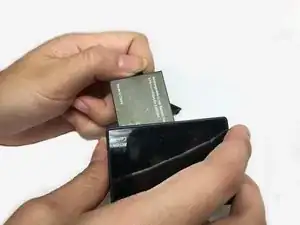 С помощью металлической лопатки аккуратно подденьте переднюю панель у оголённого отсека для батареи.