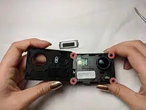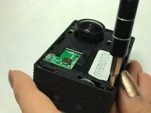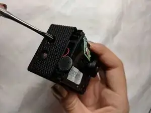 Снова используя металлическую лопатка, аккуратно вытащите кнопку из корпуса камеры.