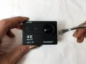 Это руководство по замене кнопок вверх и вниз на вашей Akaso EK7000. Для работы потребуются: металлическая лопатка или другой инструмент для поддевания и отвёртка Philips #000.