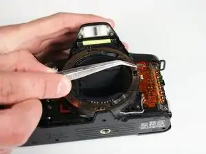 Используйте это руководство для снятия кольца байонета. В этой модели зеркальной камеры Canon байонетное кольцо пластиковое и может изнашиваться быстрее, чем металлические байонетные кольца в других моделях.