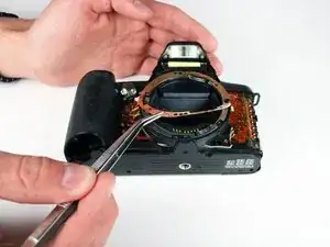 С помощью пинцета снимите пружину с кольца крепления объектива.