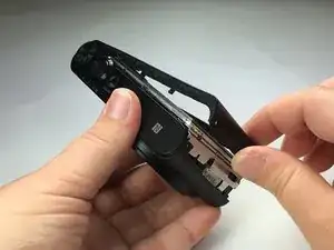 После того как деталь полностью отведена от камеры, опустите её вниз и выньте. Теперь она должна быть полностью выдвинута и способна сгибаться в месте ленты, прикреплённой к корпусу.