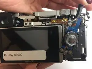 Наклоните экран камеры вперёд, чтобы открыть два винта 3 мм под видоискателем.