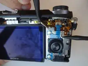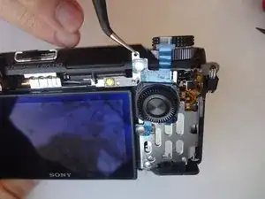 В этом руководстве показано, как разобрать заднюю крышку корпуса камеры, чтобы получить доступ к узлу колеса управления. Затем показано, как заменить колесо управления и соседние сенсорные кнопки.