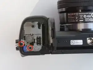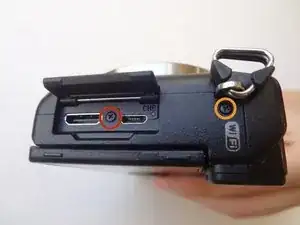 Снимите винт Phillips #00 длиной 3,5 мм на боковой части камеры — он находится между разъёмами зарядки и HDMI.