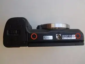 Снимите два винта Phillips #00 длиной 3,5 мм, фиксирующие заднюю крышку — они расположены на нижней части камеры.