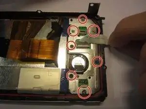 Осторожно извлеките компонент ЖК-экрана из корпуса камеры.