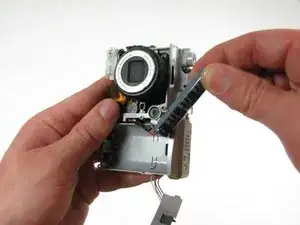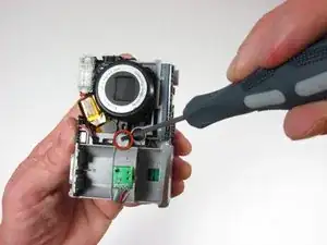 Используйте отвертку Phillips #00, чтобы удалить один винт диаметром 2.2 мм на пластиковом мостике.