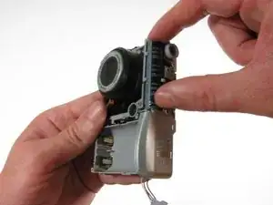 Удерживайте заднюю часть камеры и потяните корпус от себя.