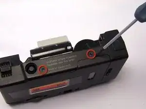 Удалите два винта Phillips размером 6.2 мм с обеих сторон задней крышки камеры.