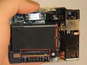 Найдите и удалите серебристые винты по обеим сторонам камеры.