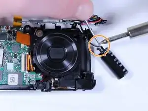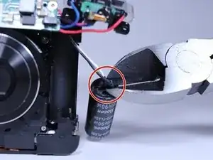 Вытяните конденсатор вспышки из его отсека, чтобы получить доступ к проводам, подключенным к нему.