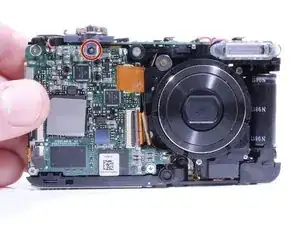 Удалите винт, крепящий кнопку спуска затвора.